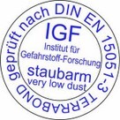 Jetzt ist es offiziell: TERRABOND wurde bei der Prüfung am Institut für Gefahrstoff-Forschung der Berufsgenossenschaft Rohstoffe und chemische Industrie an der Ruhr-Universtität Bochum nach DIN EN 15051-3  als staubarm eingestuft.